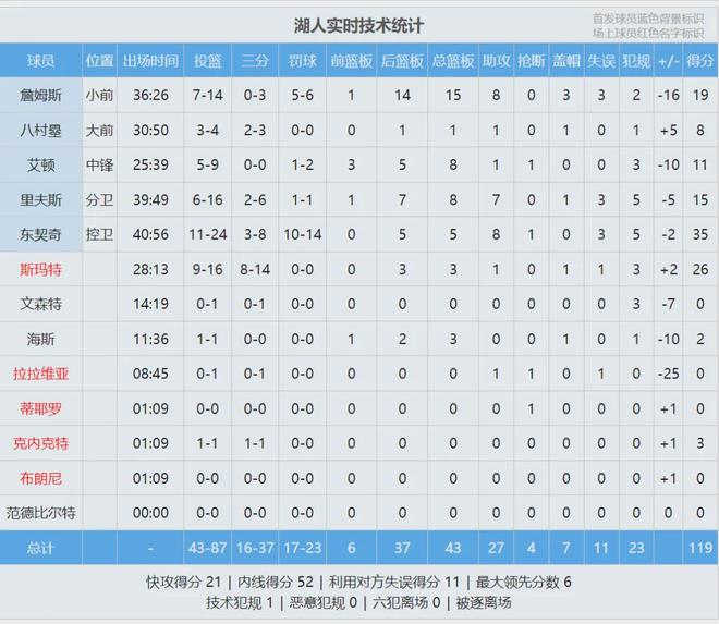 湖人首节砍下30分,进攻还行,但替补被打爆了。马刺替补哈珀单节7分进账,凯尔登-约翰逊首节6中5独得13分。为了多买几只羊,KJ今天拼了。湖人4个替补球员登场,首节合计仅得到2分。第一节打完,马刺39-30领先湖人9分。